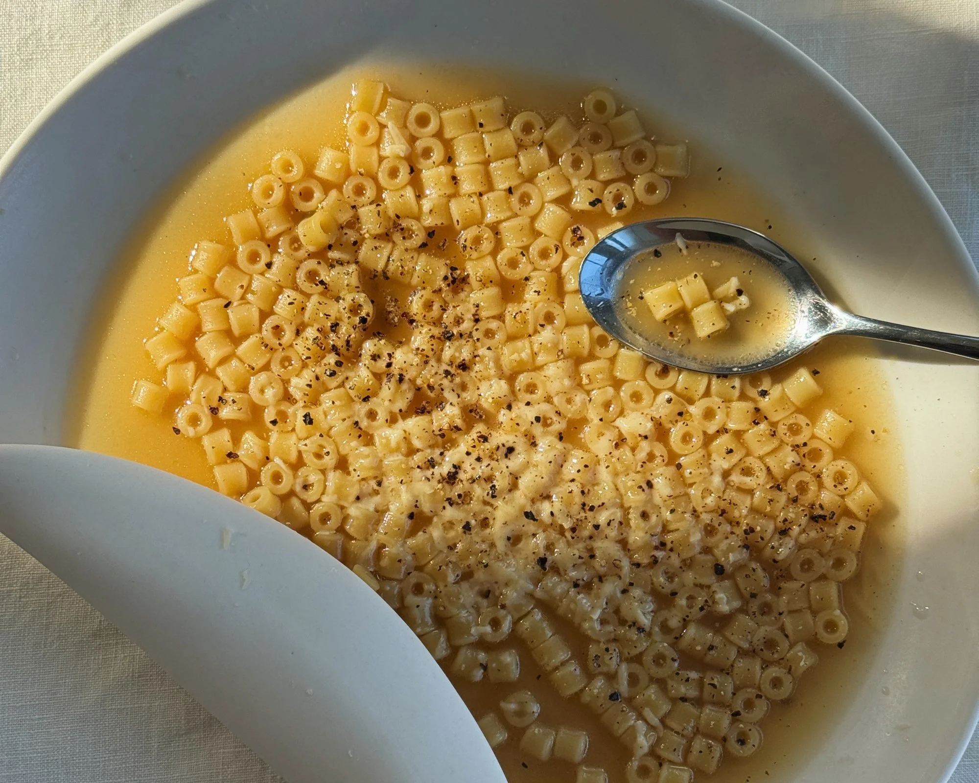 Learn how to make pasta in brodo, a comforting Italian pasta soup with homemade bone broth. This traditional Northern Italian recipe features small pasta cooked in rich broth, topped with parmesan and black pepper - it’s the perfect comfort food.